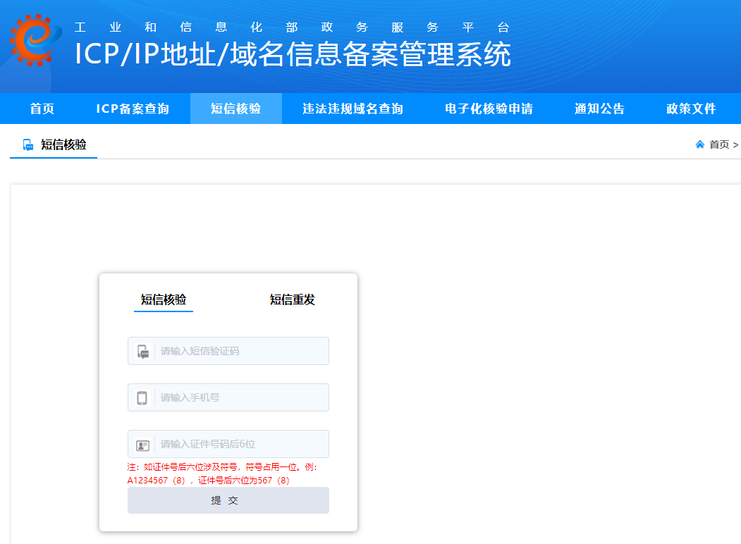 注意:手機號與主體負(fù)責(zé)人、網(wǎng)站負(fù)責(zé)人必須對應(yīng)一致,否則將導(dǎo)致驗證失效。