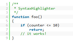 SyntaxHighlighter (原名:dp.SyntaxHighlighter)是一套在瀏覽器上對各種代碼進(jìn)行語法著色的獨立 JavaScript 庫。格式化效果如下圖所示: