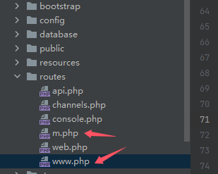 4、在routes目錄下創(chuàng)建m.php路由
