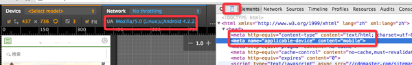 開發(fā)完成后,需要先在測試機上驗收??梢杂?Google 瀏覽器來模擬 Baiduspider 來檢查是否添加正確, 如圖所示, 是檢查 Baiduspider Mobile UA 的效果的