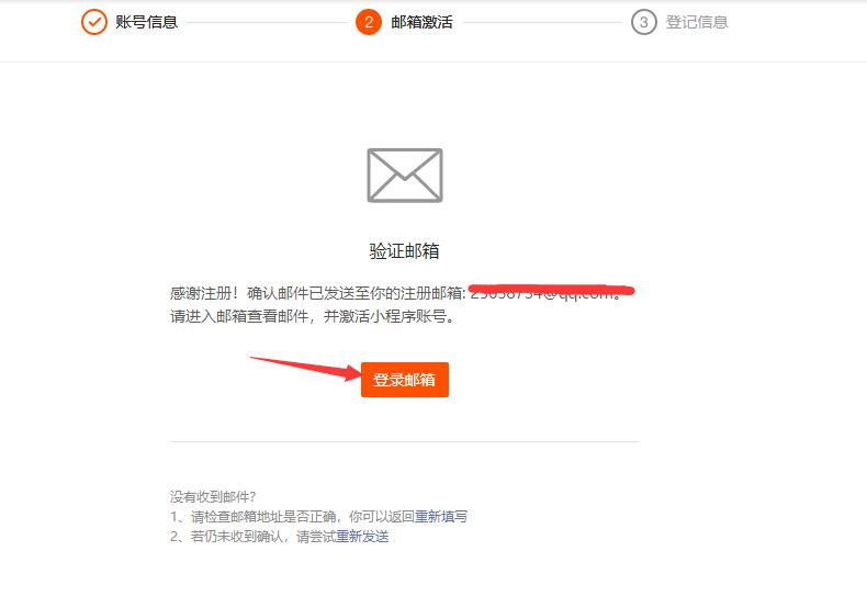 點(diǎn)擊登錄郵箱,系統(tǒng)會(huì)發(fā)送一封激活郵件到所填寫(xiě)的郵箱賬號(hào),點(diǎn)擊郵件中的鏈接,跳轉(zhuǎn)至“登記信息”頁(yè)面。